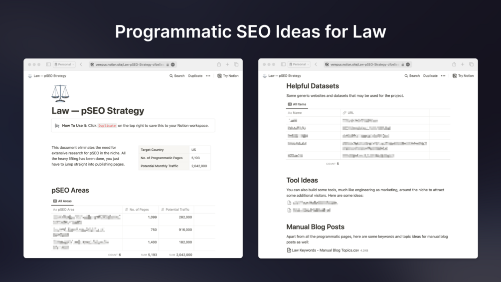 You'll a Notion document with all the pSEO ideas, and some additional stuff.