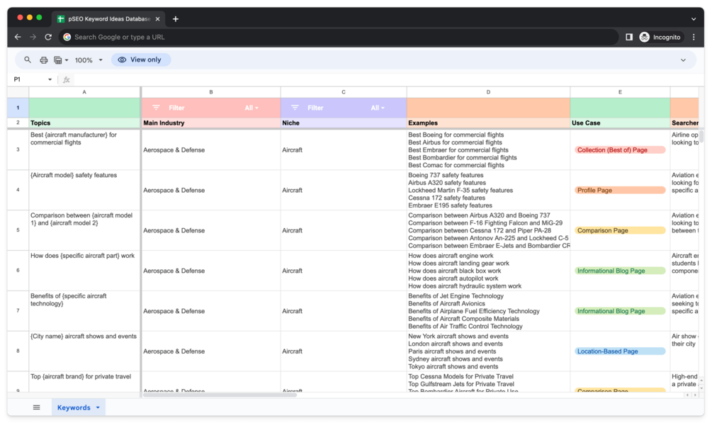 You can filter out the database as per your industry and/or niche, discover pSEO-friendly keyword ideas, and start using them in your projects.